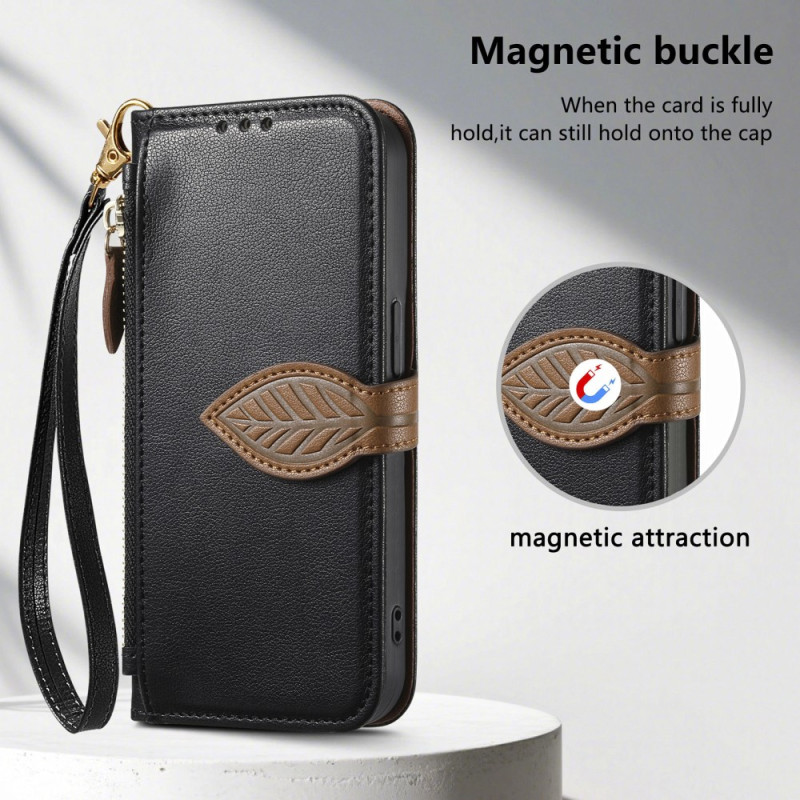 Protégez votre Xiaomi 17 Pro avec élégance grâce à cet étui multifonction. Doté d'un fermoir magnétique décoratif en forme de feuille, de 3 emplacements pour cartes, d'une poche zippée extérieure et d'une dragonne amovible pour un transport facile.