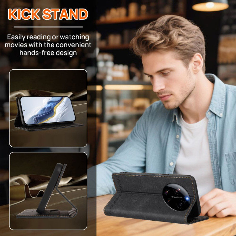 Étui portefeuille multifonction pour Xiaomi 17 Ultra 5G avec protection RFID intégrée. Conception élégante en cuir PU et TPU offrant rangement pour cartes et espèces, support mains libres et fermeture magnétique sécurisée.