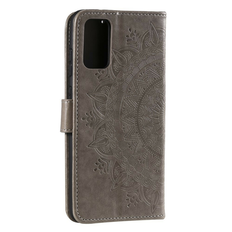 Une magnifique housse pour Xiaomi Mi 10T / 10T Pro au mandala design d'un Soleil qui fait aussi portefuille et support accompagné d'une laniére.