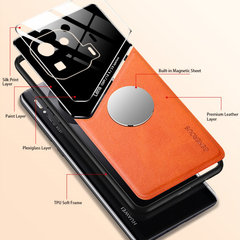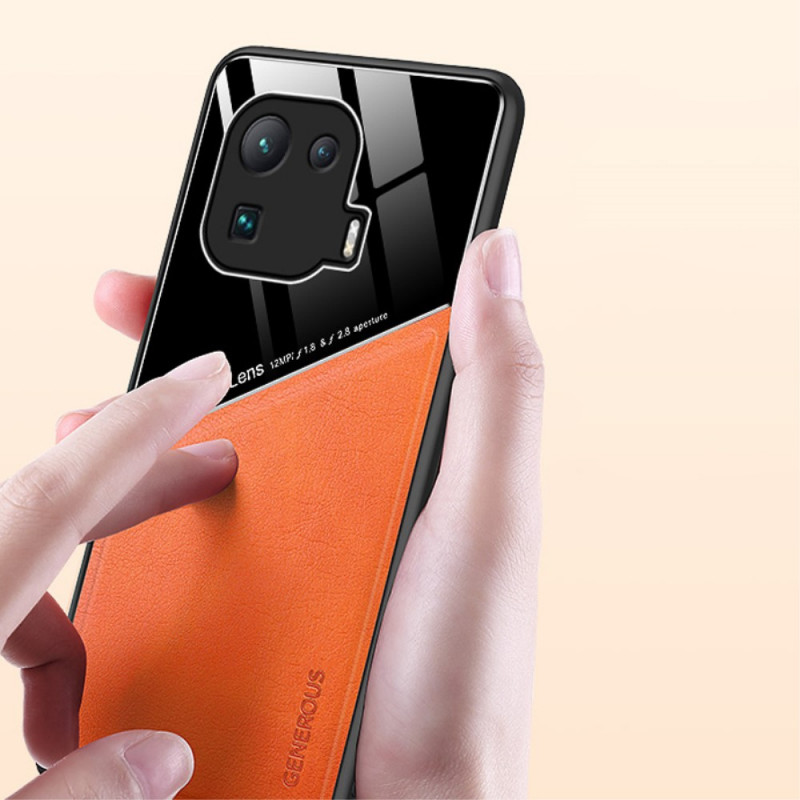 Cette coque pour Xiaomi Mi 11 Pro, en simili cuir, est élégante et peut se fixer sur un support voiture magnétique grâce à la feuille de métal intérieure.