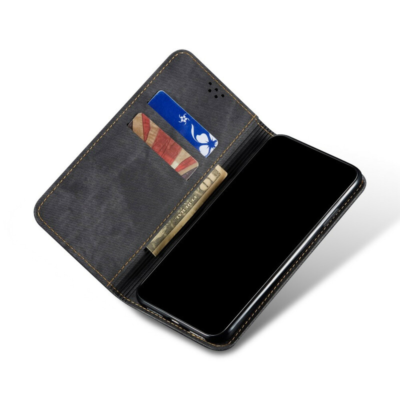 La Flip Cover tissu jeans assure la protection de l'ensemble du Xiaomi Mi Note 10 / Note 10 Pro au quotidien.