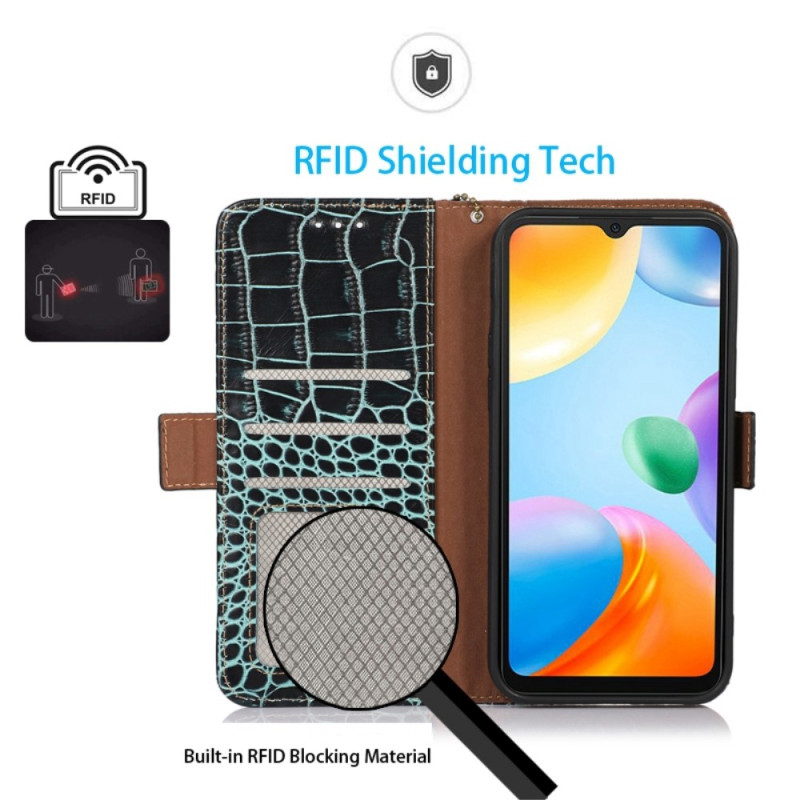 Votre Xiaomi Redmi 10C et vos cartes sont très bien protégés avec cette housse en cuir (texture crocodile) munie de la fonction RFID.