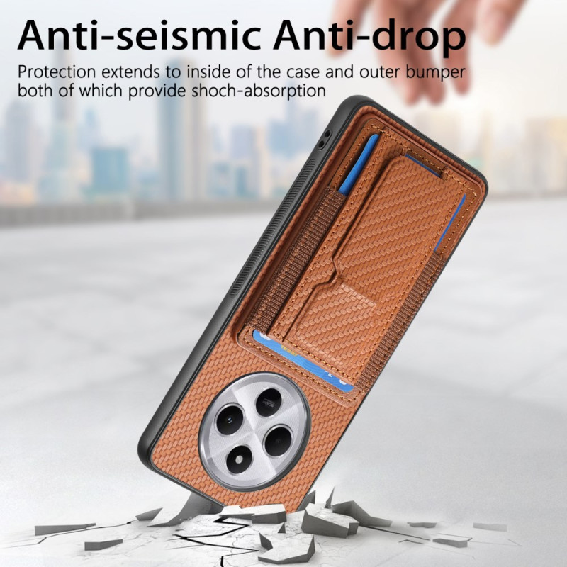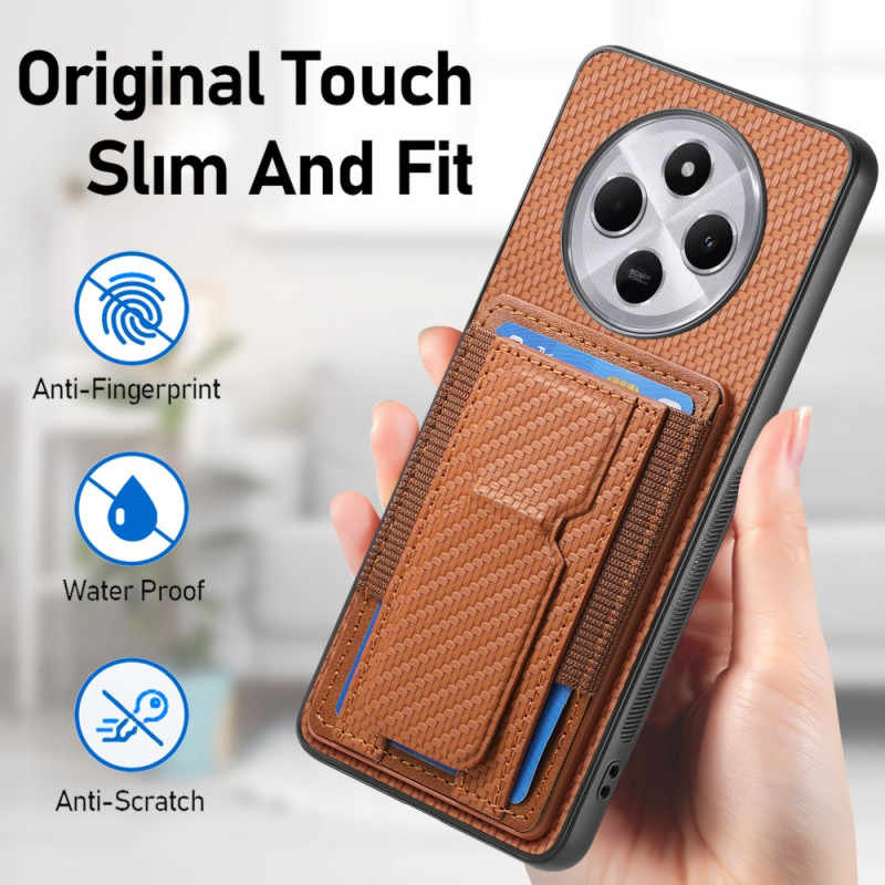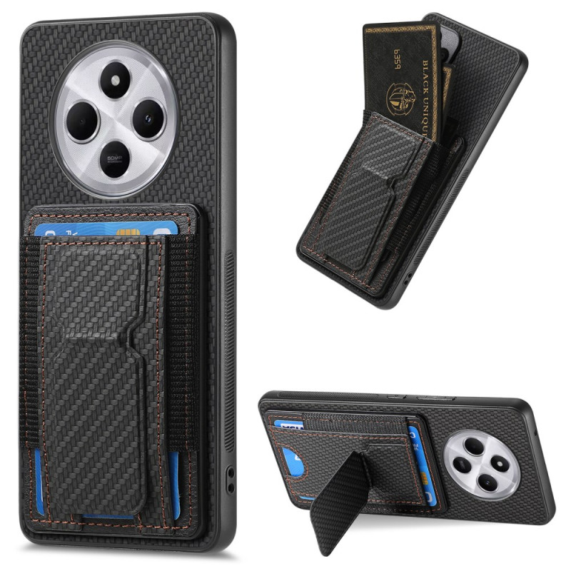 Découvrez notre élégante coque en cuir PU pour Xiaomi Redmi 14C / Poco C75 Dotée d'une texture carbone sophistiquée, elle offre un porte-cartes pratique et un support ajustable pour un visionnage mains libres.