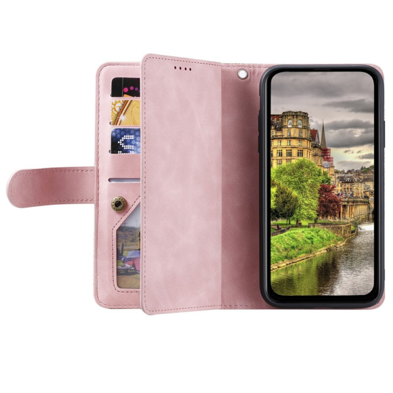Coque portefeuille en cuir PU pour Xiaomi Redmi 15 avec 9 emplacements pour cartes, fermeture éclair et dragonne. Fonctionnalité support intégrée pour un visionnage mains libres. Protection complète avec fermeture magnétique et intérieur en TPU. Parfait pour ranger cartes, monnaie et billets en toute sécurité.
