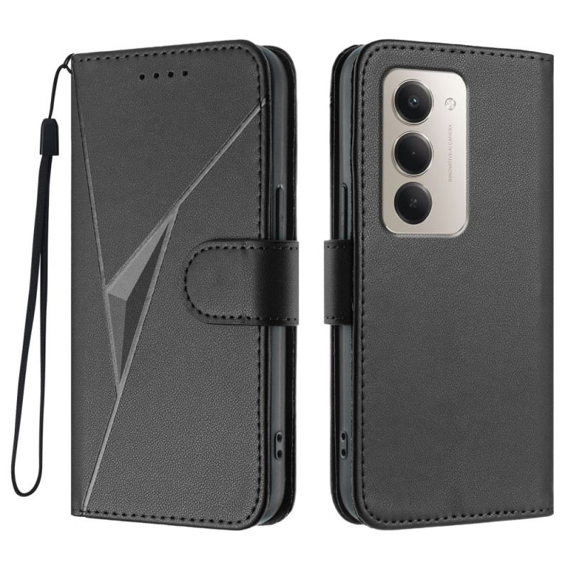 Découvrez notre élégante coque en cuir PU pour Xiaomi Redmi 15 4G / 5G. Avec sa fermeture magnétique, son motif triangulaire stylé et son design de portefeuille classique, elle offre une protection complète tout en restant pratique. La coque dispose d'un espace pour trois cartes et de l'argent, d'une protection antichoc et d'une dragonne pour plus de sécurité.