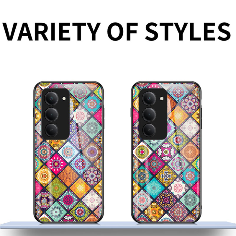 Coque de protection élégante pour Xiaomi Redmi 15 4G avec motif ethnique, verre trempé, support intégré et dragonne. Fabriquée en plastique dur et TPU souple, elle offre une protection multicouche. Le support pliable permet une visualisation mains libres, tandis que la dragonne facilite le transport et prévient les chutes.