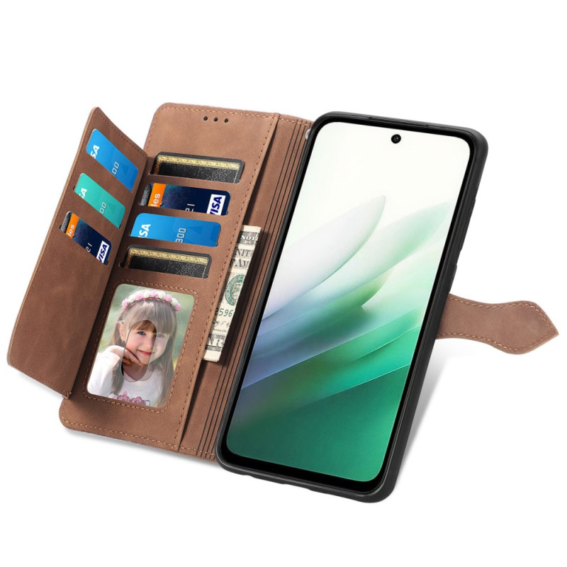 Cet étui portefeuille en cuir PU de qualité supérieure pour Xiaomi Redmi 15 4G offre une protection complète et un style sophistiqué. Doté de multiples fentes pour cartes, d'une poche zippée extérieure et d'une fonction support, il allie praticité et élégance pour une utilisation quotidienne.