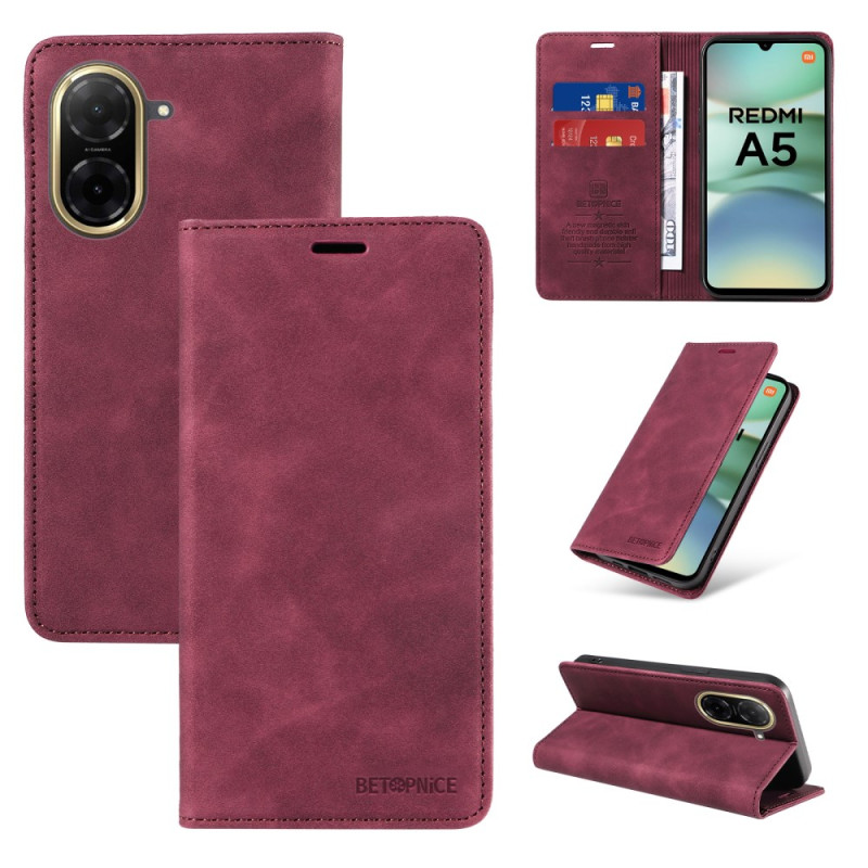 Découvrez notre étui portefeuille en cuir pour Xiaomi Redmi A5. Offrant une protection complète, il dispose d'une fermeture magnétique, d'un blocage RFID, de fentes pour cartes et d'un support intégré.
