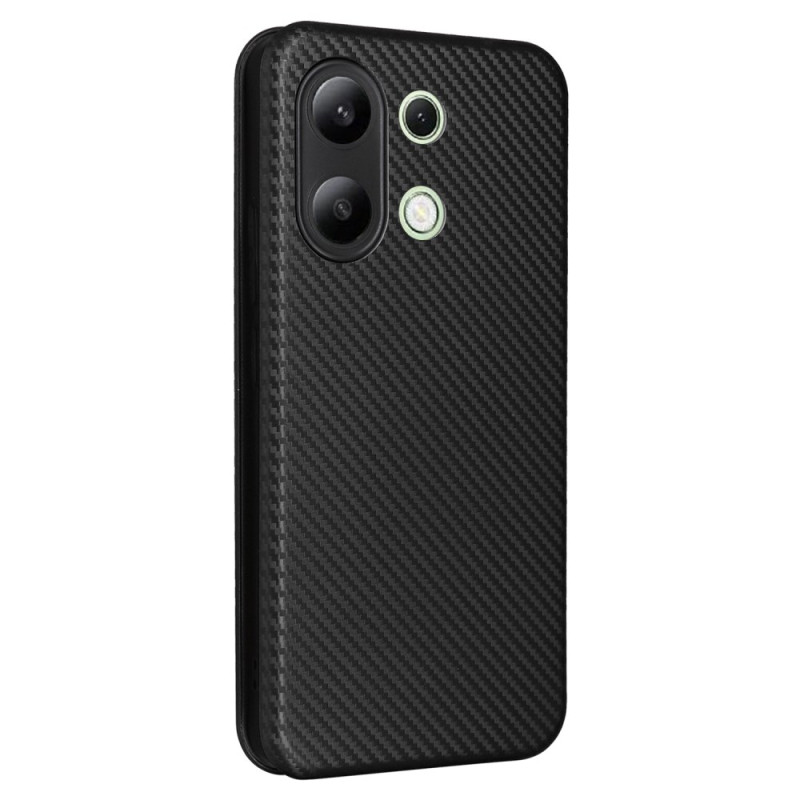 Cette flip cover pour Xiaomi Redmi Note 13 4G offre une texture en fibre de carbone, anti-empreintes digitales et une bonne sensation en main.