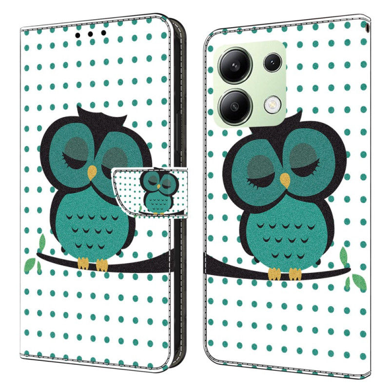 Cet étui de qualité supérieure pour Xiaomi Redmi Note 13 4G présente un motif 3D élégant de chouette endormie.