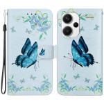 Découvrez notre housse pour Xiaomi Redmi Note 13 Pro Plus 5G, avec un motif de papillon et de fleurs bleus.