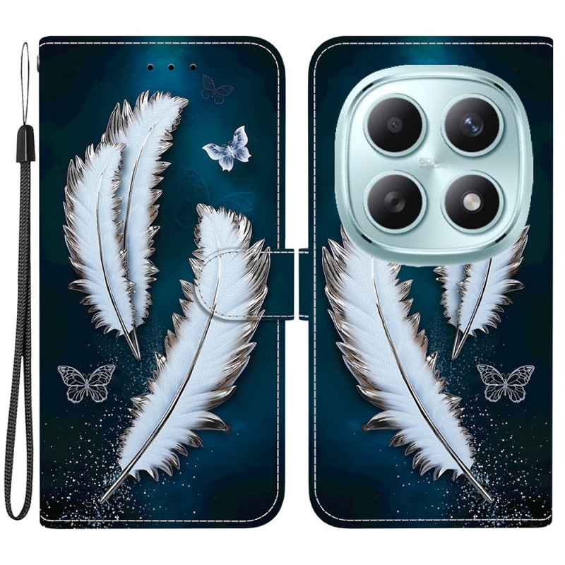 Protégez votre Xiaomi Redmi Note 15 5G / Poco M8 5G avec élégance grâce à cet étui portefeuille à rabat au motif plume papillon blanc. Doté d'une fonction support, de fentes pour cartes, d'une fermeture magnétique sécurisée et d'une lanière détachable pour un transport pratique.
