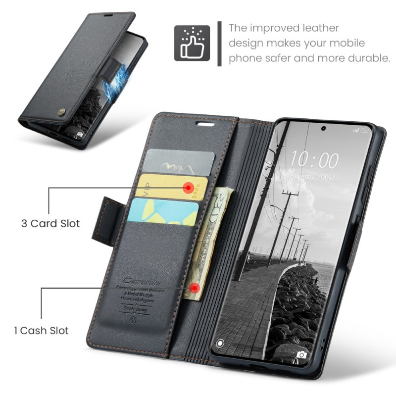 Découvrez l'étui portefeuille CASEME alliant élégance et praticité. Avec sa protection RFID avancée, ses 3 emplacements pour cartes et son support ajustable, cet étui en cuir texturé offre une protection complète pour votre smartphone tout en simplifiant votre quotidien.