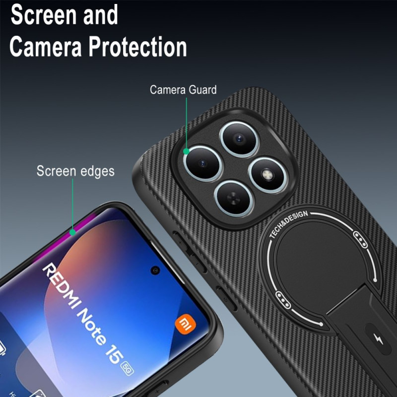 Protégez votre Xiaomi Redmi Note 15 5G / Poco M8 5G avec cette coque hybride ultra-résistante. Dotée d'une texture fibre de carbone élégante, d'une béquille rétractable et d'un système de dissipation thermique, elle allie style et fonctionnalité pour une protection optimale.