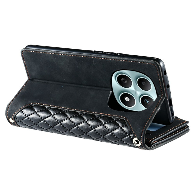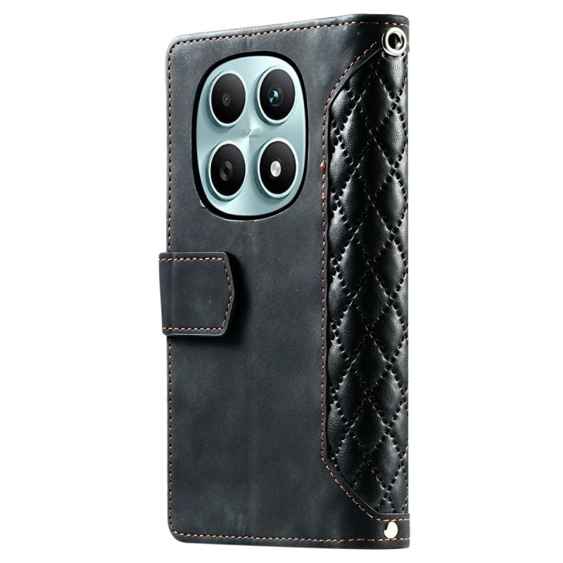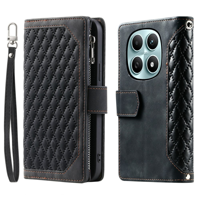 Étui portefeuille élégant avec motif losange cousu pour votre Xiaomi Redmi Note 15 5G / Poco M8 5G. Conception multifonctionnelle avec emplacements pour cartes, poche zippée et support mains libres. Fermeture magnétique sécurisée et dragonne pratique incluse pour un transport facile.