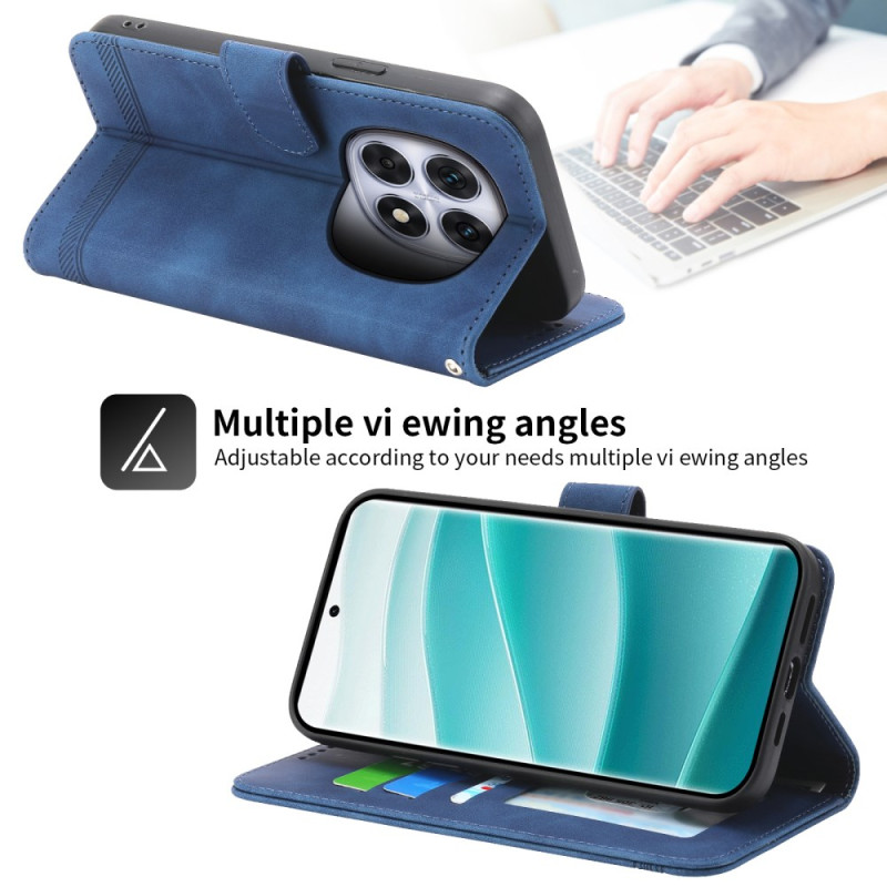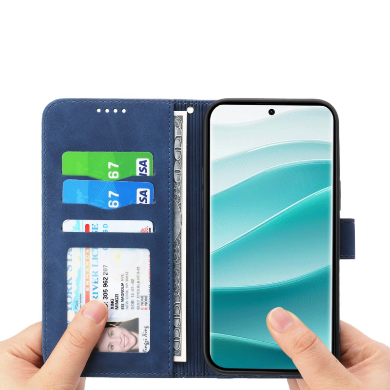 Étui portefeuille élégant en cuir PU avec motif de lignes imprimées. Doté d'une coque intérieure en TPU flexible, de fentes pour cartes, d'un compartiment pour espèces et d'une fonction support. Fermoir magnétique sécurisé et dragonne pratique incluse.