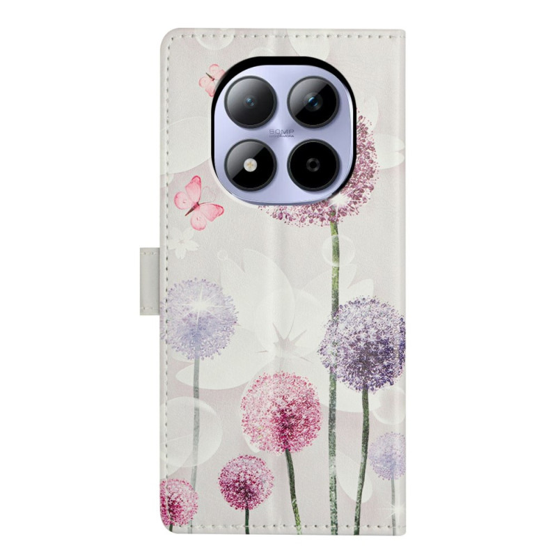 Étui portefeuille élégant avec motif pissenlit pour Xiaomi Redmi Note 15 Pro 5G. Design tout-en-un avec porte-cartes, support intégré et fermeture magnétique sécurisée. Inclut une dragonne amovible pour un transport facile au quotidien.