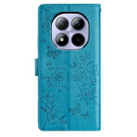 Étui portefeuille élégant pour Xiaomi Redmi Note 15 Pro 5G avec impression papillon et floral. Design à rabat en cuir synthétique avec fente pour cartes, support de visionnage et dragonne pratique. Protection complète contre les chocs et rayures.