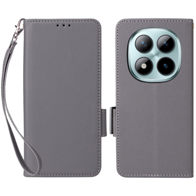 Étui portefeuille élégant en cuir PU texture litchi pour Xiaomi Redmi Note 15 Pro 5G. Fonction support mains libres, fermeture magnétique et dragonne incluse. Protégez votre téléphone avec style tout en gardant vos cartes essentielles à portée de main.