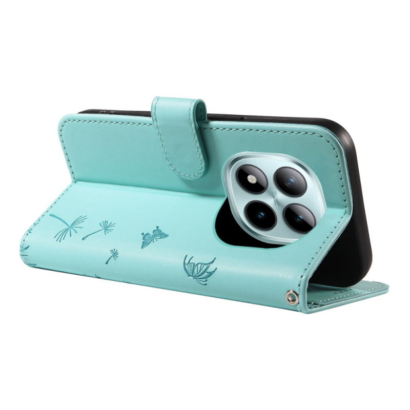 Étui portefeuille élégant en cuir PU premium pour Xiaomi Redmi Note 15 Pro Plus 5G / Poco M8 Pro 5G. Design raffiné avec motif pissenlit imprimé, 3 emplacements pour cartes, compartiment latéral et dragonne incluse. Fonction support intégrée.