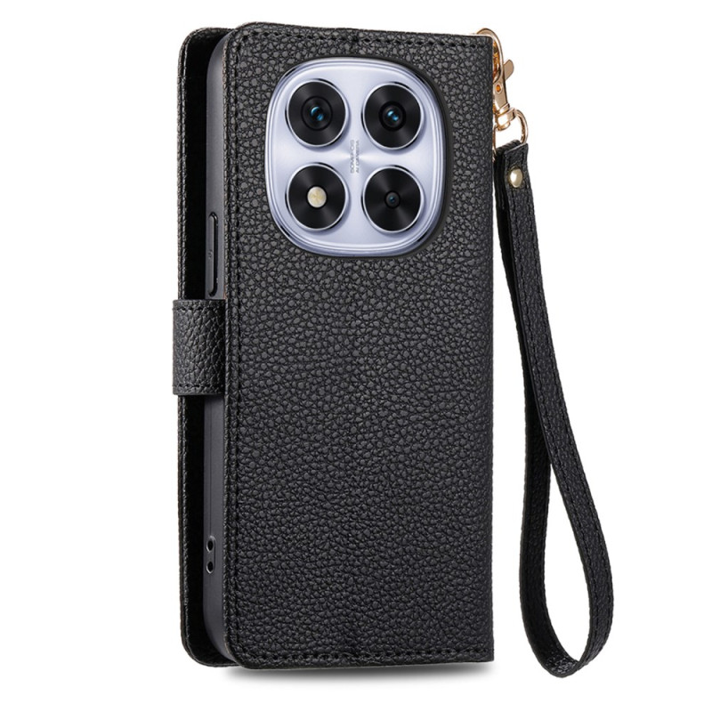 Étui portefeuille élégant pour Xiaomi Redmi Note 15 Pro Plus 5G avec technologie de blocage RFID avancée. Doté d'une poche zippée, de compartiments pour cartes et espèces, d'un support mains libres et d'une dragonne pratique. Protection intégrale contre les rayures et les chutes.